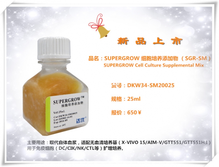 血清替代物新產品:SUPERGROW細胞培養添加物(SGR-SM)上市了!